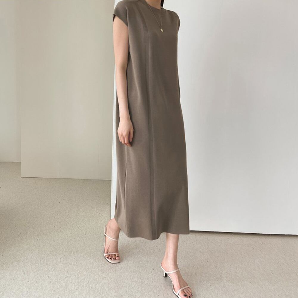 ミモレ丈ワンピースに半袖ショールカーディガンのニットセットアップが新作登場