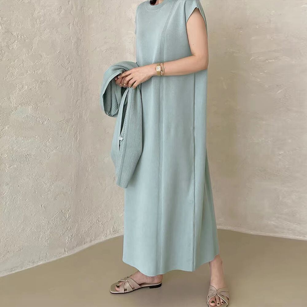 リブニットワンピース サマーニット カーディガン ショール アンサンブル 2点セット 20代 30代 オフィスカジュアル