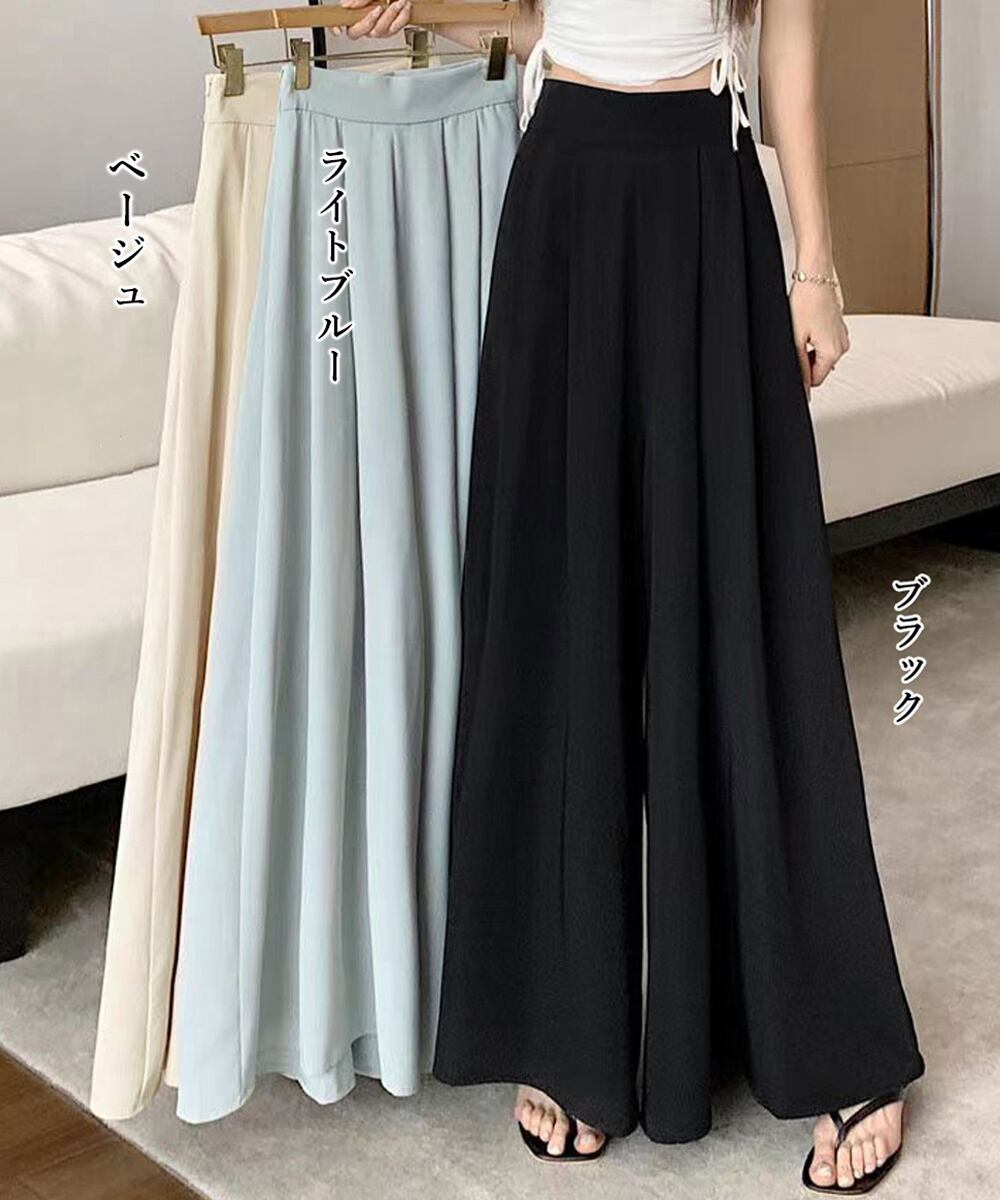 とろみパンツ スカンツ春夏 きれいめ ハイウエストフレアパンツ 無地 ロングパンツ さらとろ 体型カバーボトムス 韓国風